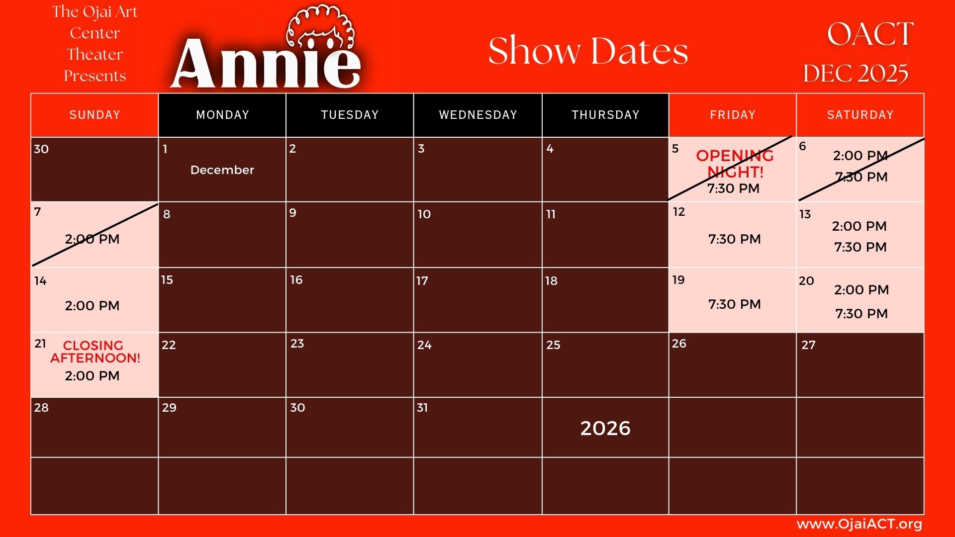 Purchased online, at the door on the performance night, over the phone at 805-640-8797, or by emailing Herb@ojaiact.org to make your reservations! Doors open at 6:45 PM on Fridays and Saturdays, and 1:15 PM on Sundays.
