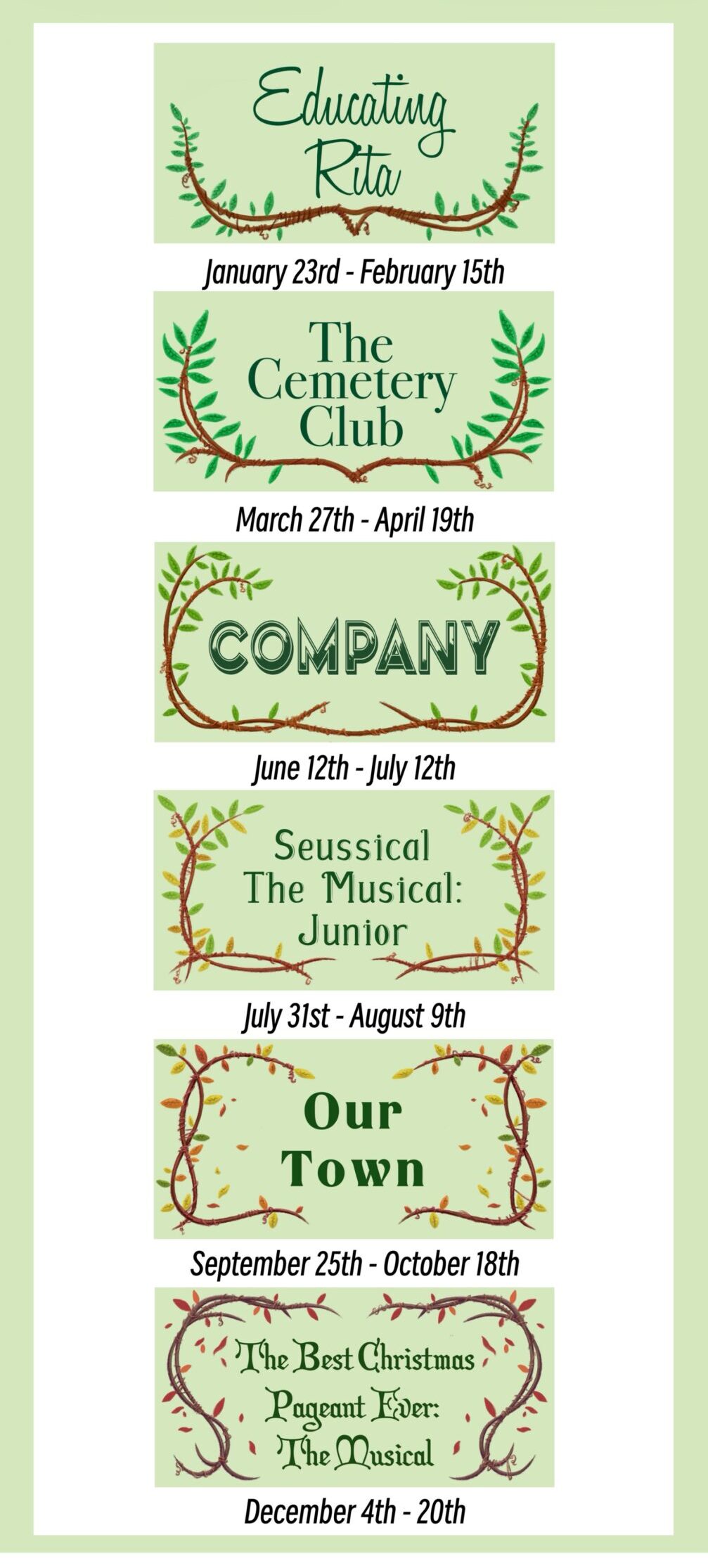 We have finalized our 2026 Theatrical Season! We have a lineup of shows whose stories are rooted in the growth, challenges, and journeys life will take us on. Here’s our lineup for next year: