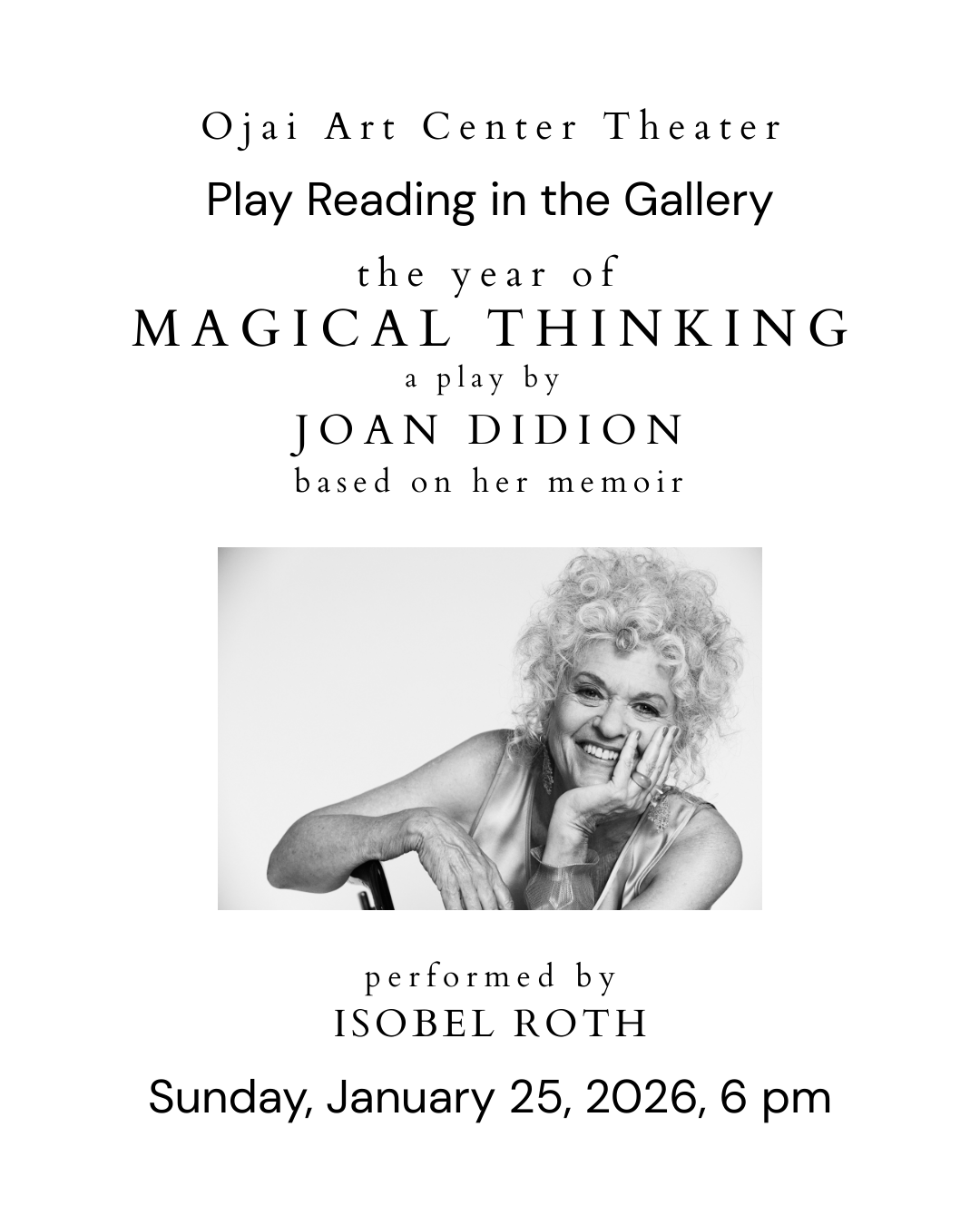 Tickets are available now! They can be purchased online, at the door, over the phone at 805-640-8797, or by emailing Herb@ojaiact.org to make reservations. Doors open at 6:45 PM on Friday and Saturday evenings, and 1:15 PM on Sunday matinees.