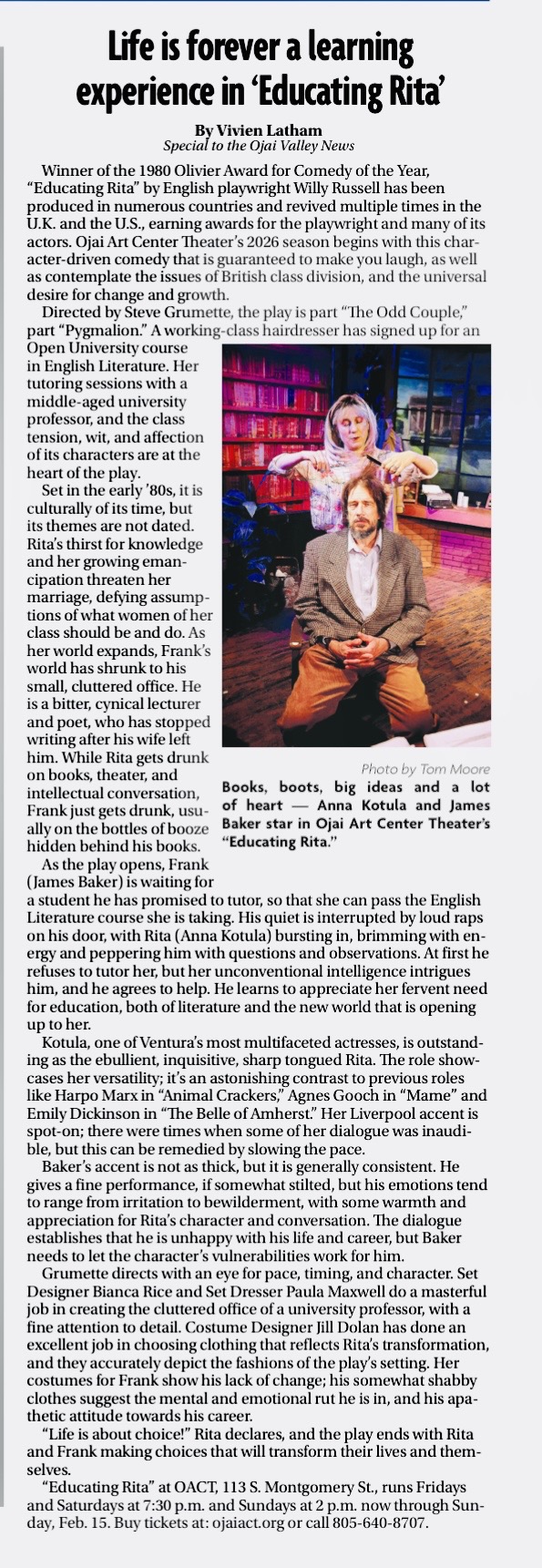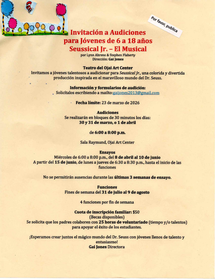 The Ojai Art Center is a community hub for the arts, with a Theater Branch that has yearly theatrical seasons and several one-of-a-kind events, celebrations, readings, and more. Come see a show, lend a hand backstage, or shine on stage in one of our productions!
